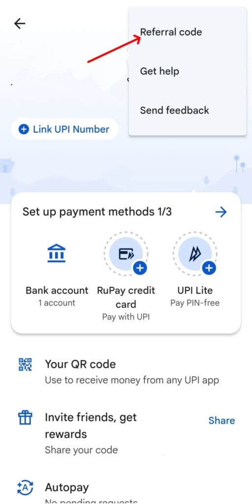Step 5:- Click on Referral Code.