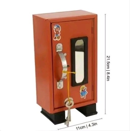 We presents to you a very classy and nice-looking Super Cute Almirah Style Coin Box Piggy Bank Money Saving ATM for Kids.It has 3 compartments for storage and super quality outer paint finish. Attractive Design Money Saving Box Inspired by its Antique Designs. very classy and nice looking Super Cute Almirah Style Coin Box Piggy Bank Money Saving ATM for Kids. They can also be used as a showpiece in your home. A must have for all kids & family.Tin Material comes with 2 keys lock.Presents a very classy and nice looking Super Cute Almirah Style Coin Box Piggy Bank Money Saving ATM for Kids. They can also be used as a showpiece in your home. A must have for all kids & family. Tin Material comes with 2 keys lock Coin Box Money Box Piggy Bank for your kids. Will improve your kids habit of saving money. Consists of three compartment. High quality material durable for several years. Available in multi colors A great gift for childrens to learn to solve, spend & share.Kids will love placing money in their piggy bank friend & love watching their savings grow.Multiple colours to choose from making it perfect for a baby girl or a baby boy.